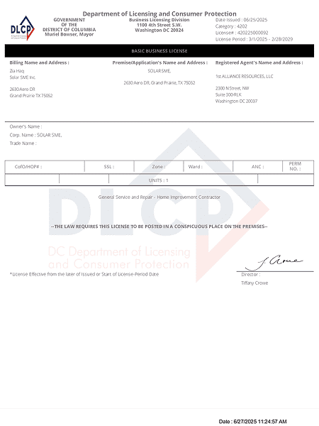 - Solar SME Certificates & Licenses